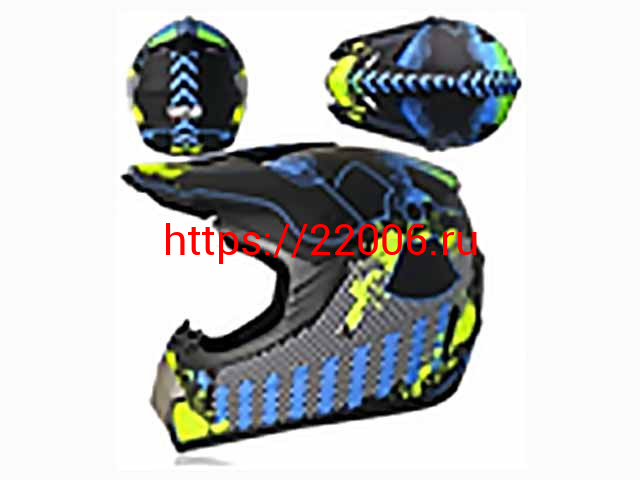 - Мотошлем VIRTUE MD-905 Кросс черный матовый с сине-салатовым рисунком (S) в Тюмени недорого