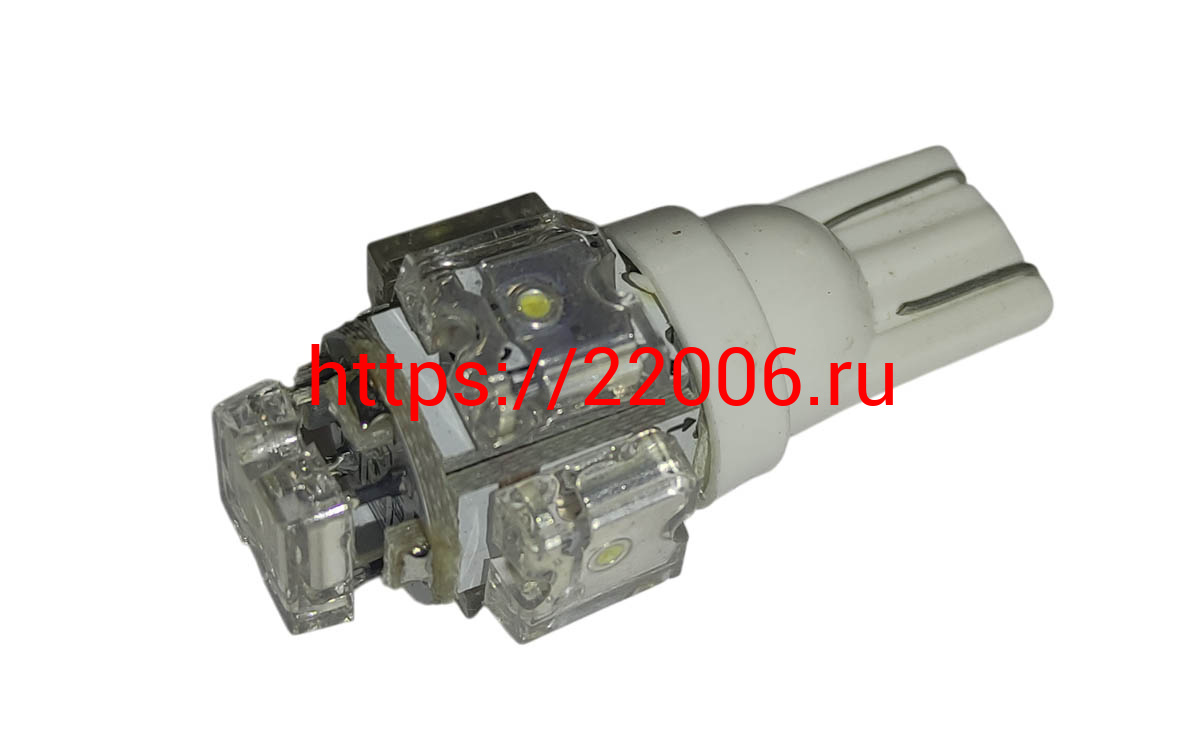 - Лампа светодиодная (LED) 12V T10 (W2,1х9,5d) 5LED W5W белая в Тюмени недорого