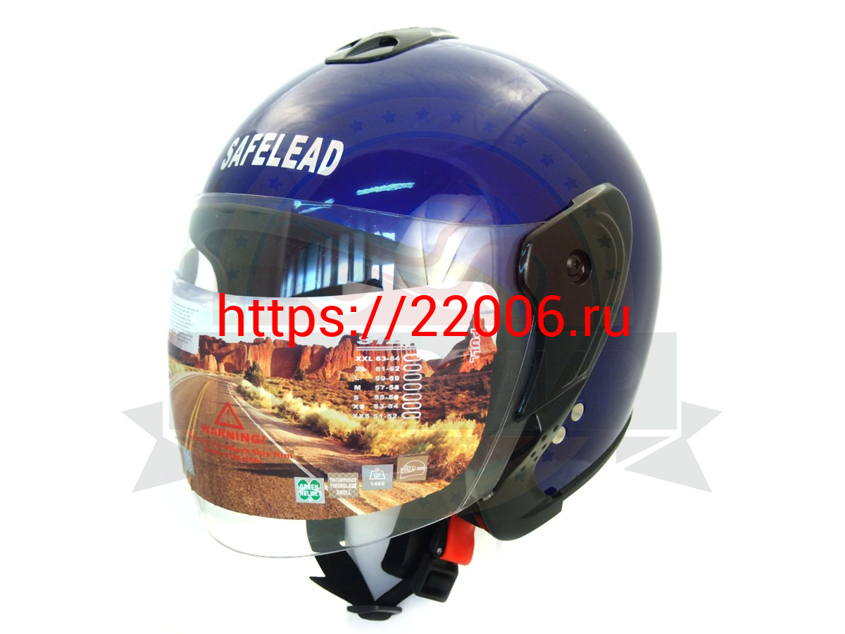 - Шлем открытый "Safelead" HF-217"колобки с доп. стеклом" deep синий, красный черный, размер S в Тюмени недорого