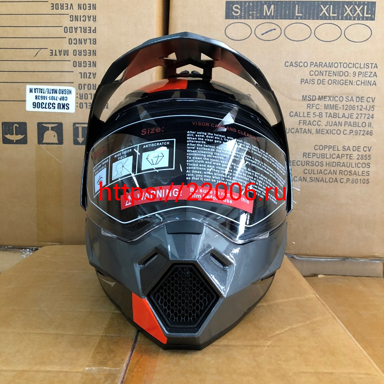 - Шлем туринг (кросс со стеклом и очками) COBRA JK802, серо-оранжевый, размеры M в Тюмени недорого