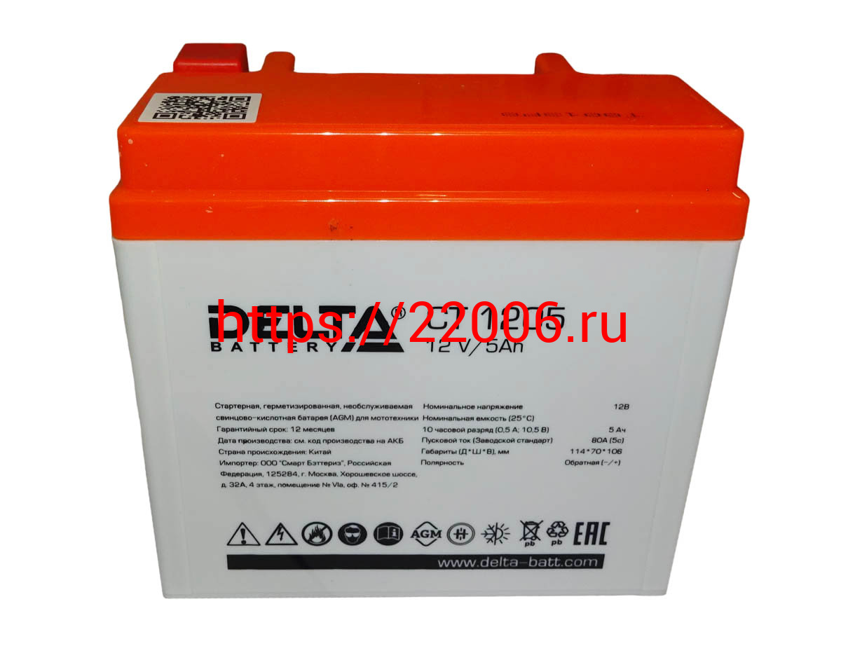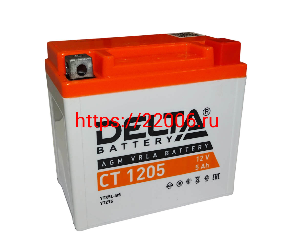 - Аккумулятор 12В 5 А/ч, кислотный AGM (Delta СТ 1205) (113х70х106) обратная полярность, для Альфы в Тюмени недорого